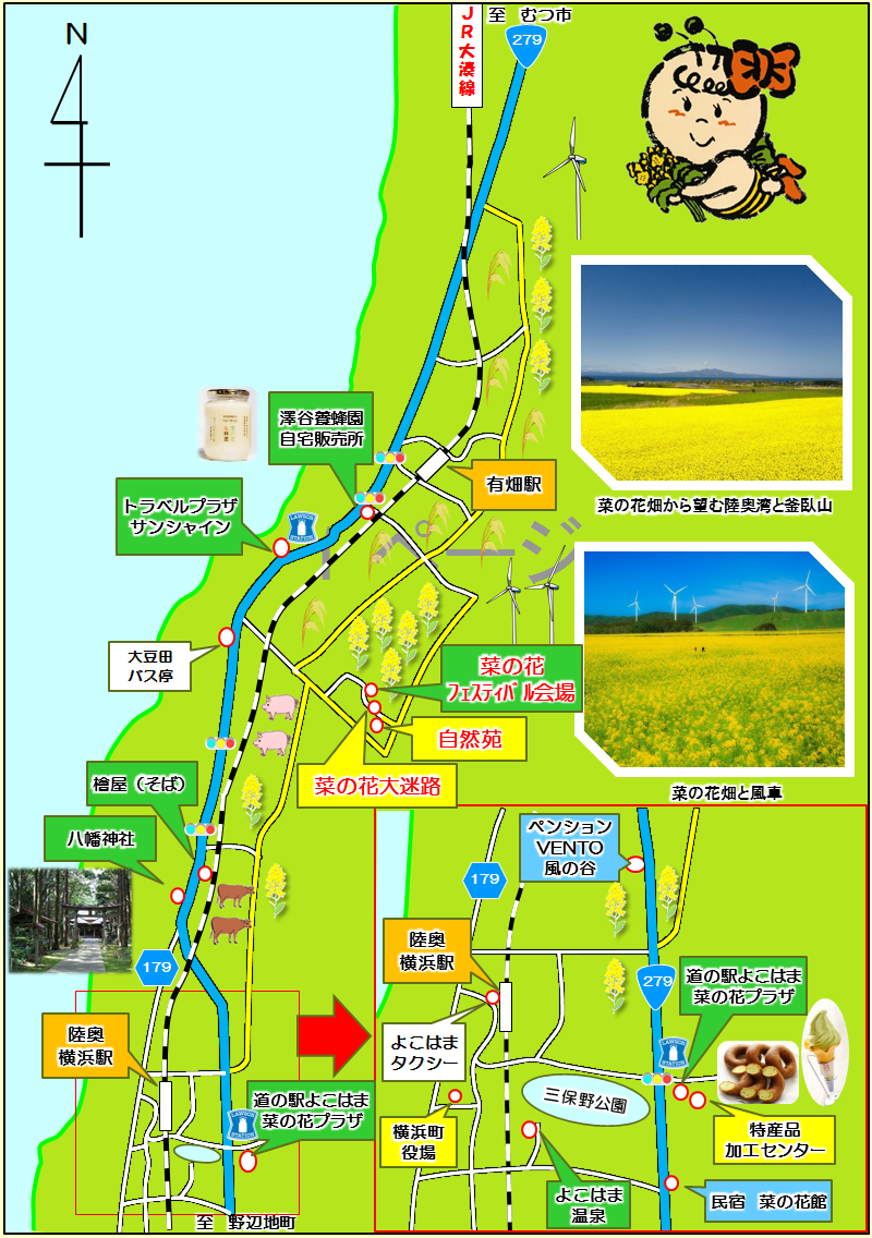 | 菜の花フェスティバル会場 | 横浜町字大豆田98-64 | 0175-78-2111 |