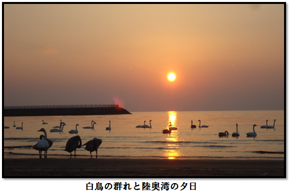 - 晴れの日には陸奥湾の夕陽を望むことができ、また冬には白鳥の飛来地となる等、一年通して見どころがあるスポットとなっています。